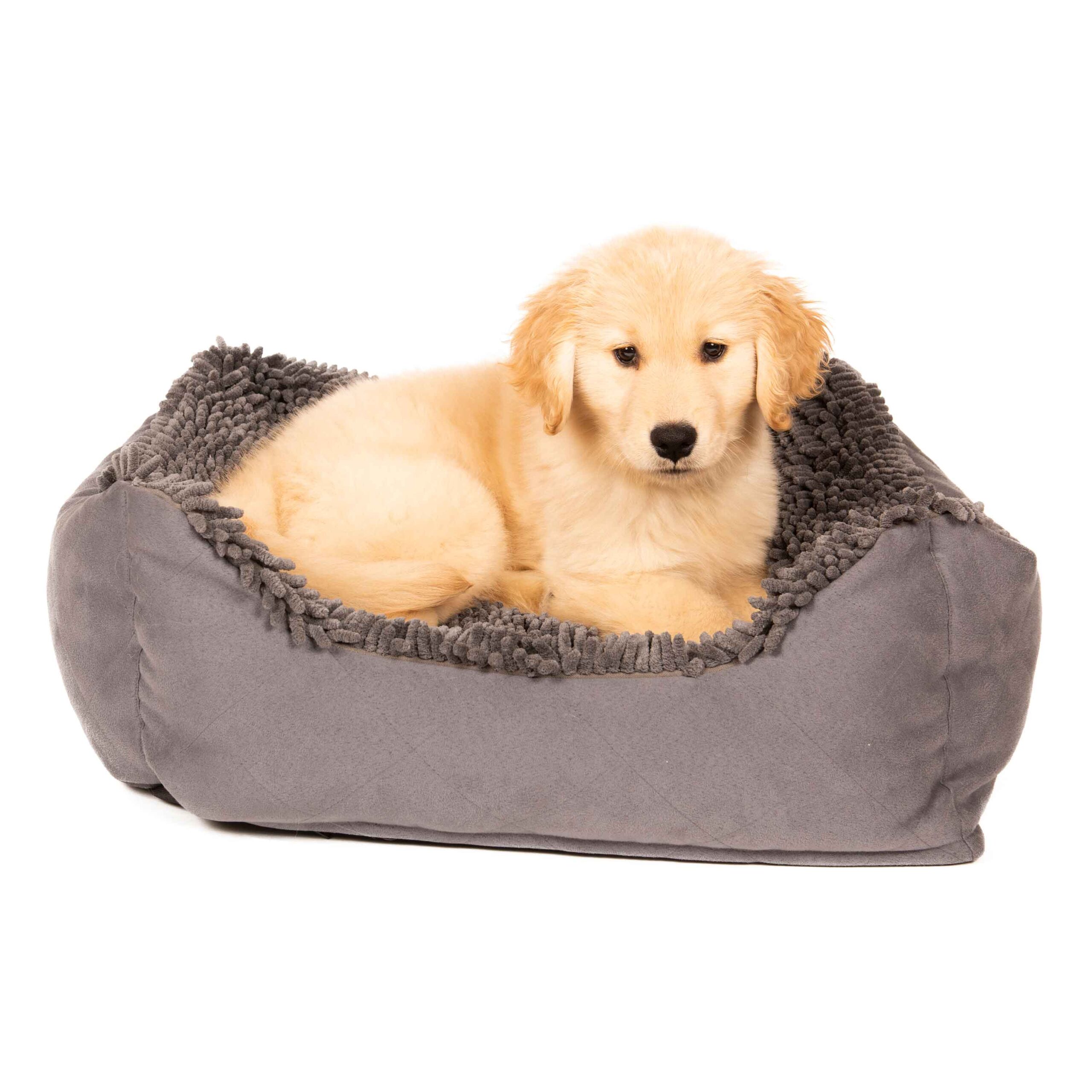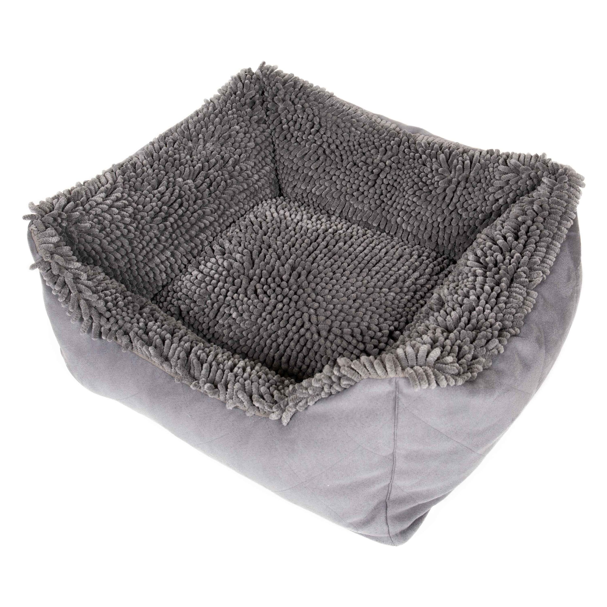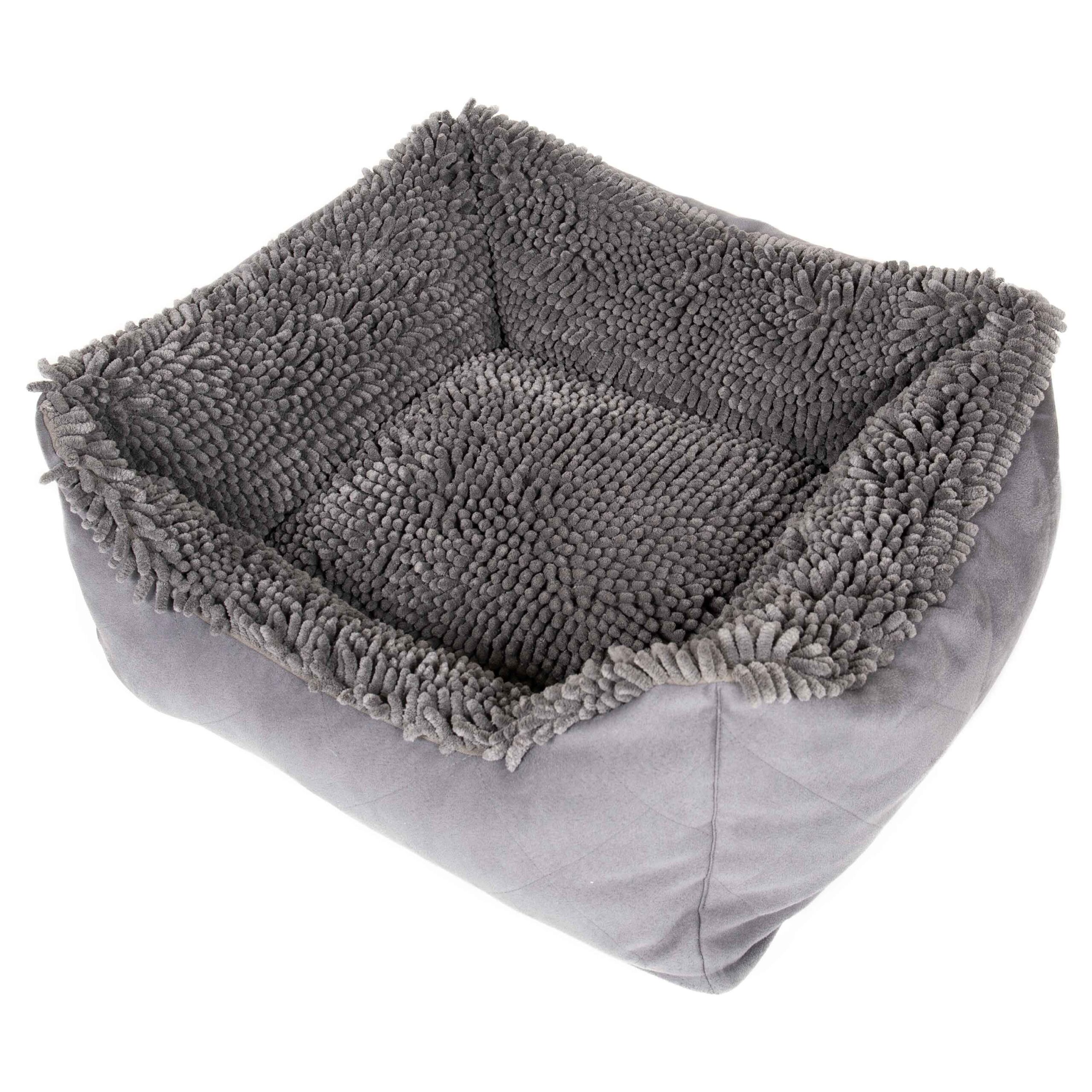 Pets and pet parents love The Original Dirty Dog Doormat. Our soft, plush microfiber made the mats and runners not only effective at capturing mess and cleaning paws on the move, they quickly became a comfortable and favorite place to take rest. The Dirty Dog Bedding Collection takes that comfort to a new level. Microfiber feels as soft and gentle as the coziest cotton or down but the synthetic, allergen-free material is tough enough to last for years. It has naturally-occurring anti-microbial properties due to the unique characteristics of these tiny fibers. A bed is just a natural evolution for something so velvety and comfortable. We upgrade the interior with a high density cushion for maximum comfort. Quilted suede fabric sides ensure these beds are as elegant as they are tough. The Dirty Dog Lounger Bed is a popular option for dogs that love to feel nested. The bolstered sides filled with plush wadding gives major head support. The center pillow uses a polyfill that maintains shape and lift.
