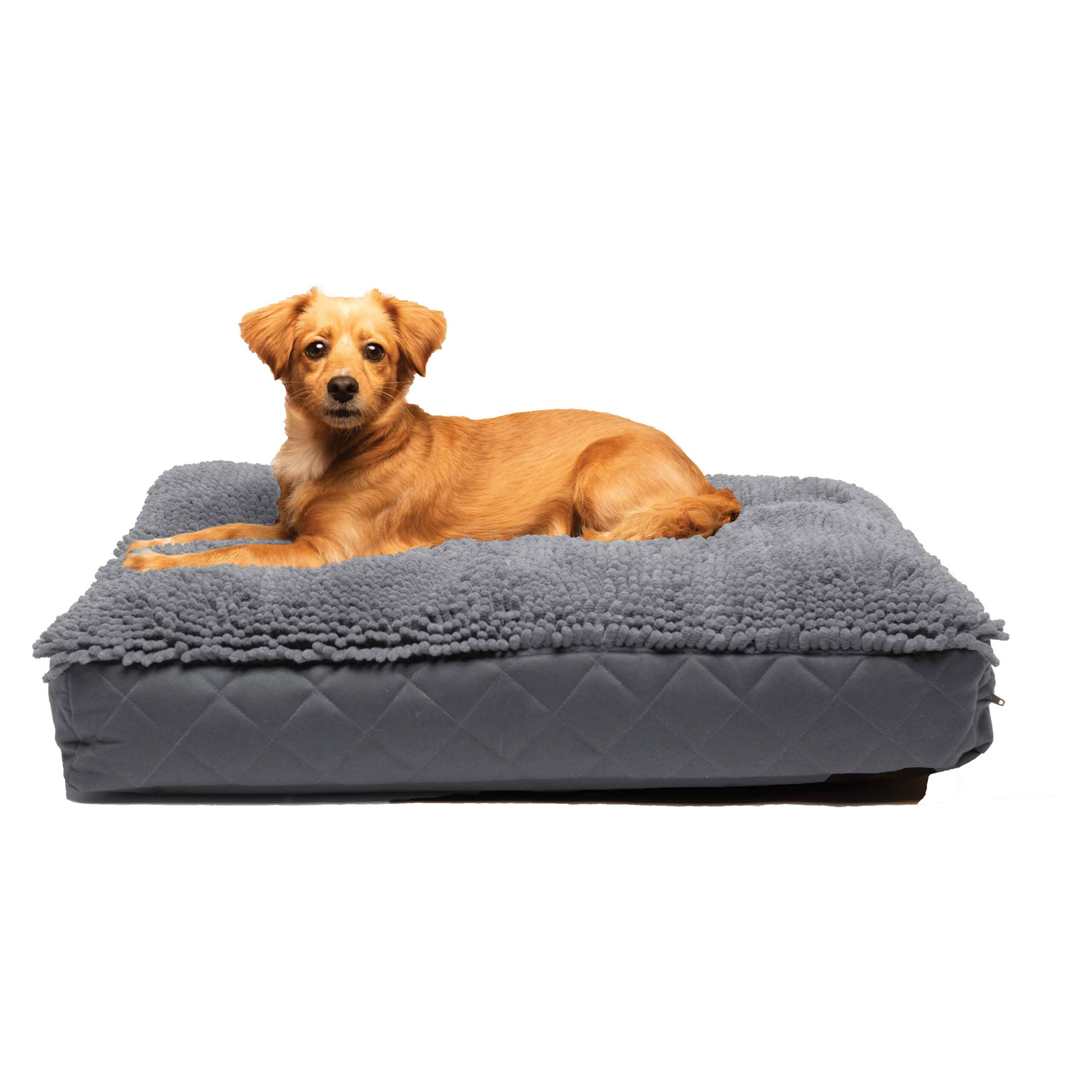 Pets and pet parents love The Original Dirty Dog Doormat. The soft, plush microfiber made the mats and runners not only effective at capturing mess and cleaning paws on the move, they quickly became a comfortable and favorite place to take rest. The Dirty Dog Bedding Collection takes that comfort to a new level. Microfiber feels as soft and gentle as the coziest cotton or down but the synthetic, allergen-free material is tough enough to last for years. It has naturally-occurring anti-microbial properties due to the unique characteristics of these tiny fibers. A bed is just a natural evolution for something so velvety and comfortable. The Dirty Dog Rectangle Beds upgrade the interior with a high density cushion for maximum comfort. Quilted suede fabric sides ensure these beds are as elegant as they are tough. Triple-chambered fill insert to reduce lumps and fill bunching High density polyfill maintains a high loft and provides long-lasting support Hidden zipper pocket on outer cover eliminates chewing/ripping at the zipper Removable outer cover is machine washable