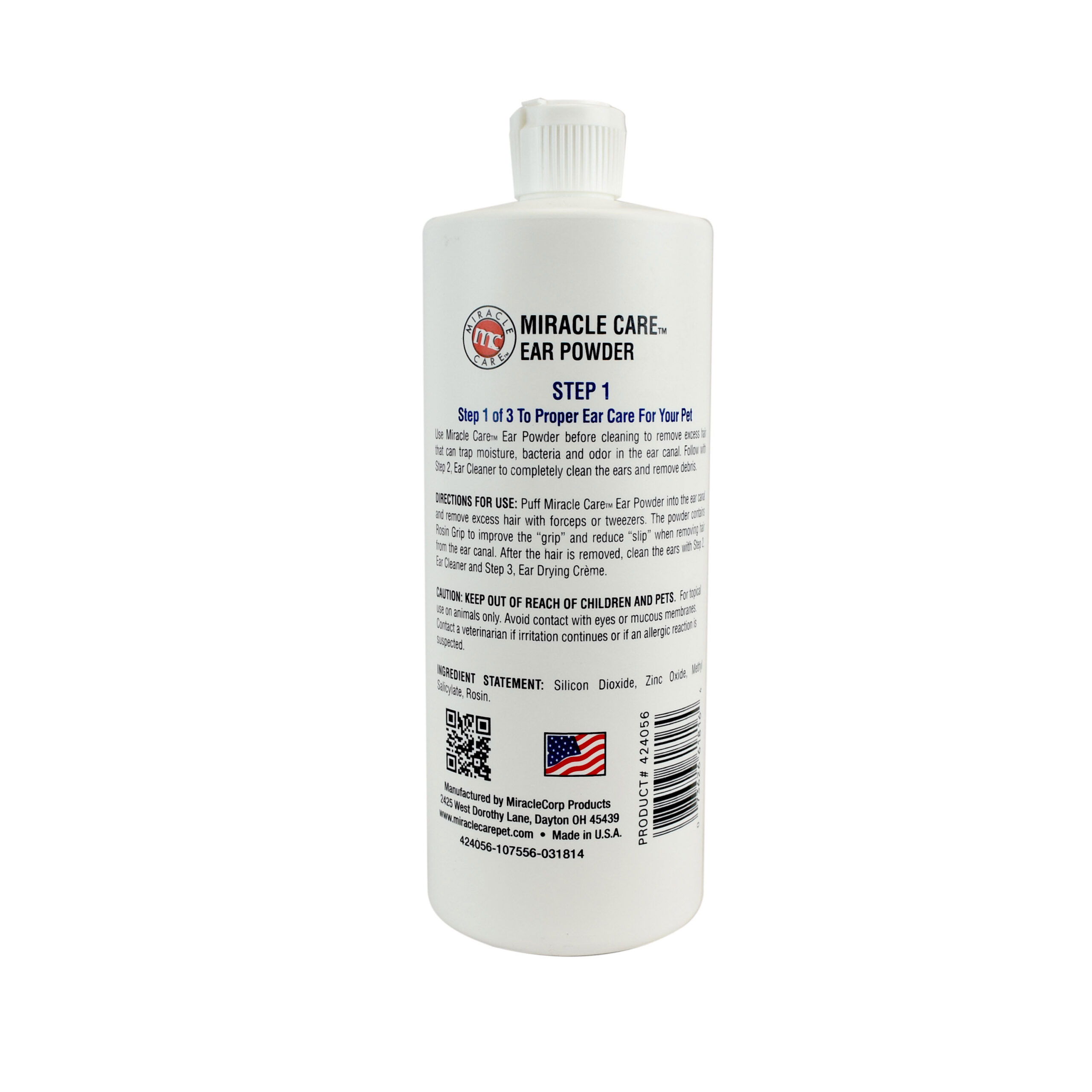 This remedy is used to cleanse the ear of excess hair that could contain bacteria, and make cleaning easier. Ear Powder keeps ears clean and odor-free while reducing waxy build up leaving the ear canal open and clear.