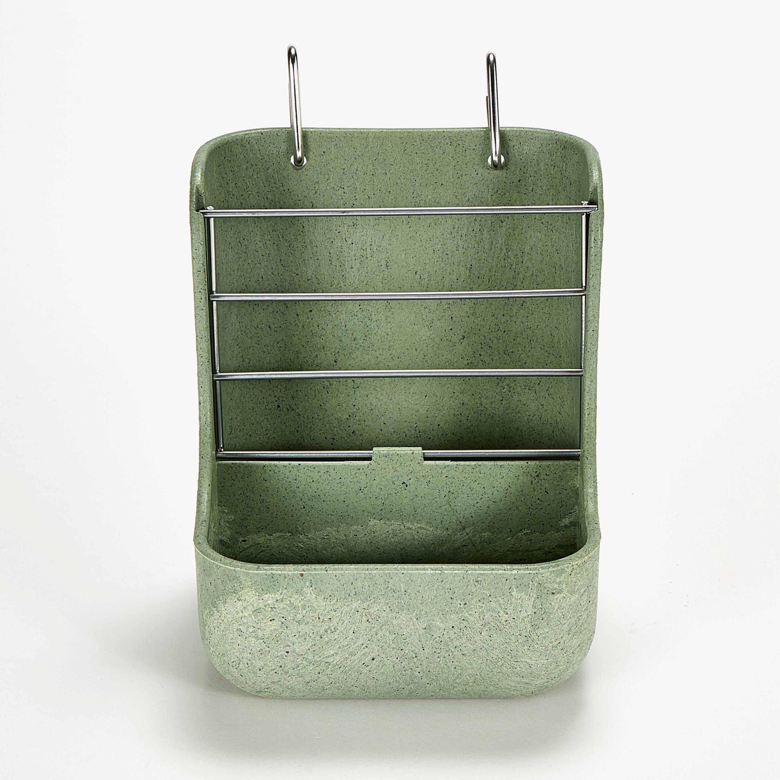 This combo feeder has a compartment for hay and a separate compartment for food. The Feeder can be hung securely anywhere in your pet’s cage using the included carabiner clips. This keeps your pet’s food and hay fresh and clean by keeping it off the floor. Dishwasher Safe: Wash with a mild soap solution, rinse thoroughly with clean water to ensure the removal of soap residue, then dry completely. Provide your small pet with a clean supply of both food and hay. For rabbits, chinchillas, guinea pigs, or other small animals. Large combo bin feeder dispenses hay and food without the mess Keep a generous supply of food and hay in a clean, organized bin style feeder Made of a plastic and wood composite material and features Quick Lock to secure feeder in place Ideal for rabbits, chinchillas, guinea pigs or other small animals Actual size 5-3/4-inch long, 5-3/4-inch, wide, 7-inch high