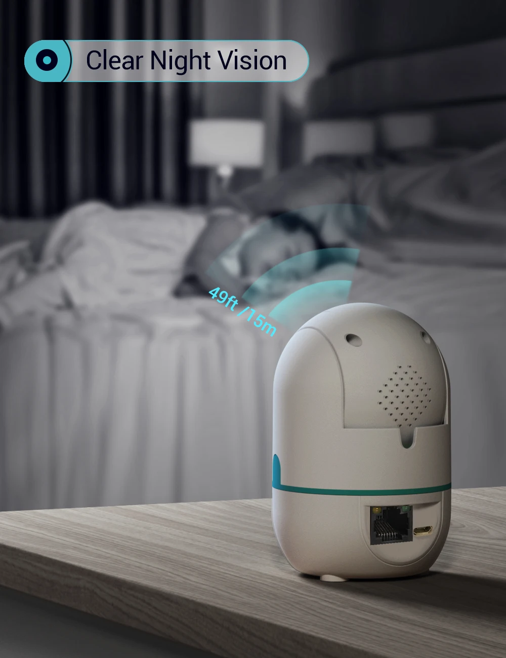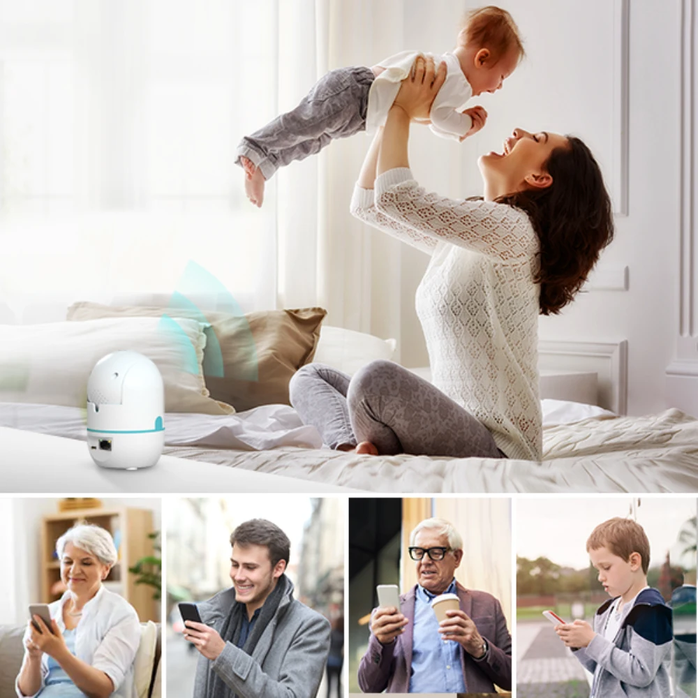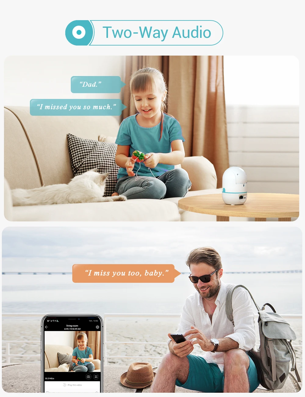 Built-in microphone and speaker with advanced audio encoding and noise reduction technology to easily communicate with your family and pets through this wifi home camera. No matter when and where, you can chat with your family with one click, there is no distance between your family interaction