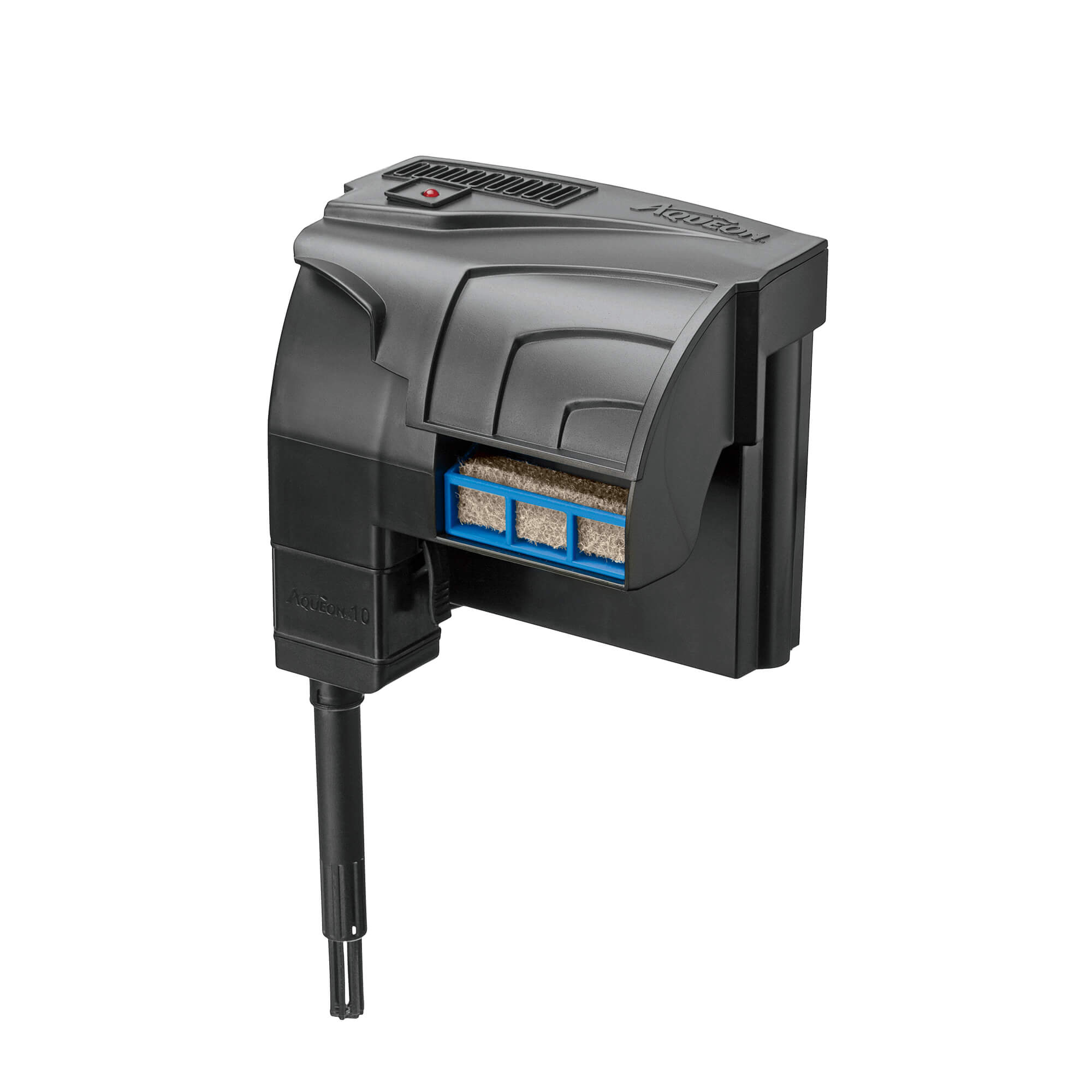 A great benefit of the Aqueon QuietFlow filters is the internal pump design that helps dampen noise, eliminates leaks and because it is self-priming, starts up automatically after cleaning or power interruptions. Higher flow rates also ensure a higher dissolved oxygen content for healthier, more active fish. There are five total stages of filtration–mechanical, chemical, biological and an additional specialty pad–for the cleanest, clearest, healthiest water. Stage 1 – Dense floss removes particles and debris. Stage 2 – Activated carbon removes toxins, odors and discoloration. Stage 3 – Patented Bio-Holster removes toxic ammonia and nitrites. Stage 4 – Diffuser grid removes additional toxins while adding oxygen for more active fish. It also reduces splashing makes the return exceptionally quiet. Stage 5 – Specialty filter pad option for additional carbon, ammonia reducer or phosphate remover. All filters use Aqueon Replacement Filter Cartridges and Aqueon Specialty Filter Pads. Fits aquarium size up to 20 gallons LED indicator light flashes when it’s time to change the cartridge Filter pump is self-priming, just plug and play out of the box; filter will auto-restart if power is interrupted and restored Provides mechanical, chemical, biological, and additional specialty pad filtration High flow rates ensure a highly dissolved oxygen content for healthier, more active fish