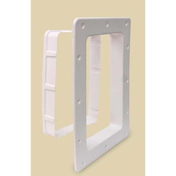 It consists of a two-piece molded frame with a protective outer lip. Includes: Outside frame and tunnel, 20 wood screws and 12 washers, Cut-out template, and Installation instructions.